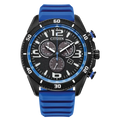 Unleash your inner adventurer with the Brycen chronograph, sporting a bold black-tone stainless steel case and vibrant blue accents. Its racing-style pushers and durable blue silicone strap keep you looking sharp, whether you're on the track or in the office. Powered by Citizen's ingenious Eco-Drive technology, this watch harnesses light, so you'll never fret about a dead battery. Packed with a 1-second chronograph, 12/24 hour time, and 330-foot water resistance, it's adventure-ready and always on point.