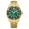 The Citizen Promaster Eco-Drive Diver powers up with light, so you never need a battery change. Built to ISO standards, this robust timepiece is ready for any underwater adventure down to 660 feet. Its striking gold-tone finish, and vibrant green dial add a splash of style, making it perfectly suited for both deep-sea exploration and daily wear. This watch marries professional functionality with a sophisticated, urban edge.