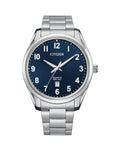 Stylishly designed with sleek silver tones and an eye-catching midnight blue dial, this Quartz powered watch blends ageless aesthetics with sophisticated construction. Crafted from stainless steel and mineral glass, it offers a 3‑year battery life and WR100/10 bar water resistance for reliable performance under pressure. A push‑button buckle ensures comfort while the date display adds convenient functionality. Perfect for the modern gentleman who values both style and durability.